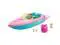 Imaginations can take their stories from land to sea with a Barbie boat that really floats! With cool features, a colorful design and room for three dolls (sold separately), kids can load the speed boat up and take their Barbie dolls all kinds of adventures. Slip a doll into the hot pink life vest and ride through the wake, then park the boat to lounge on the stern with plug-and-play cupholders and beverage accessories. Barbie doll's pet puppy is along for the ride, too -- there's even a special seat on the bow, just for him! A colorful pink and blue design is just Barbie doll's style, and a translucent yellow weather shield adds another pop of color.