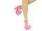 - The doll is fully posable and dressed in removable fashions, featuring a pink peplum top, denim shorts, gloves, and heels!