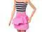 This special edition Barbie doll takes inspiration from her original 1959 swimsuit style with a fresh update: a black-and-white striped top paired with a pink ruffled skirt. Strappy black heels and stylish blue sunglasses bring classic and trendy together in one chic look! Stylish High Ponytail