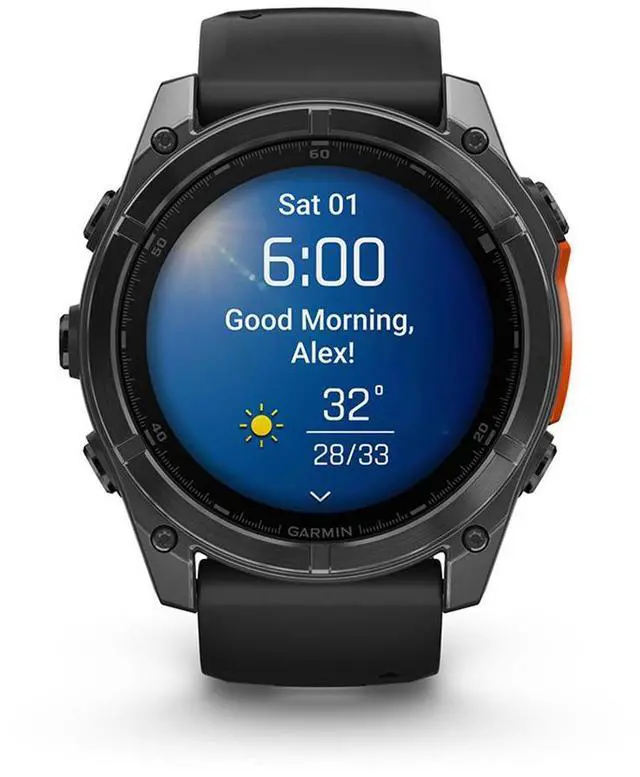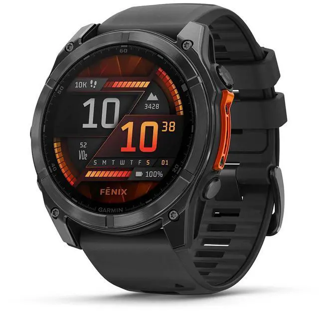 Crafted to withstand the elements, the Garmin fenix 8 boasts a dive-rated construction with leakproof buttons and a metal sensor guard cover. Its bright 1.4" AMOLED display offers options for a scratch-resistant lens and titanium bezel, ensuring durability. Tested to U.S. military standards, it provides exceptional thermal, shock, and water resistance.