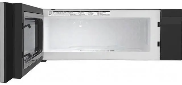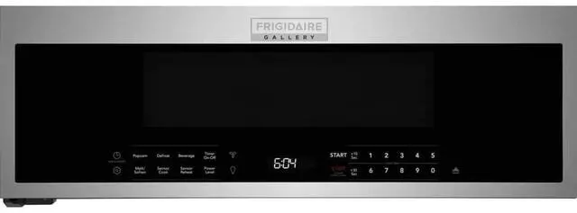 Maximize countertop space with this Frigidaire Gallery 1.2 cu. ft. Low-Profile Over-the-Range Microwave that replaces your undercabinet hood without sacrificing interior capacity. Sensor Cook, preset cooking options, and Sensor Reheat offer time savings so that you can put delicious meals on the table in no time. Dual open door offers two easy ways to open the door, simply touch the icon or pull open the sleek hidden handle.