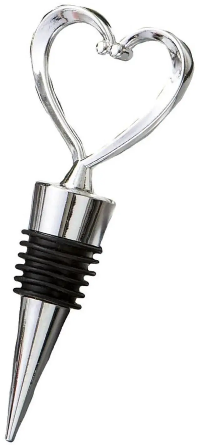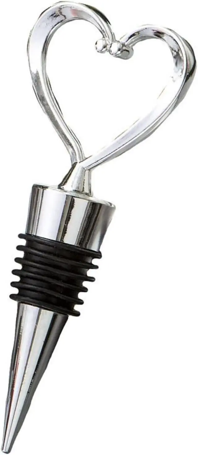 These Silver Heart Wine Bottle Stoppers feature a lovely romantic molded chrome heart shape on top of a chrome base. Wine themed favors are all the rage and these wine stoppers will add a memory-filled moment to each bottle your guests uncork.