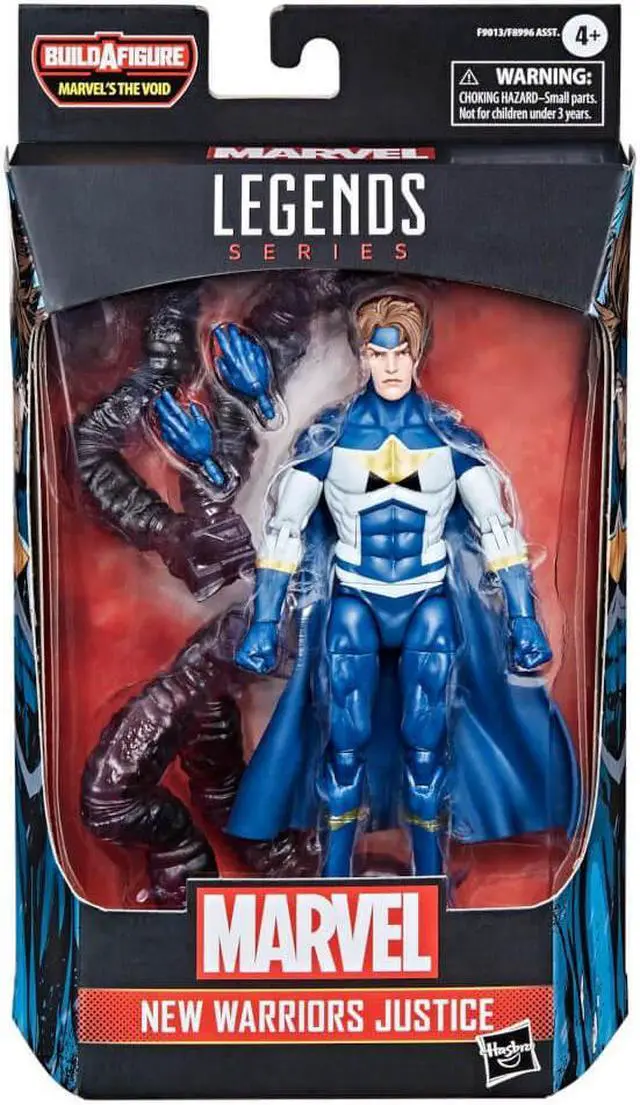 Comics-Inspired New Warriors Justice This collectible New Warriors Justice action figure is inspired by the character's appearance in Marvel's New Warriors comic books. Premium Design And Deco Fans and collectors can display premium Marvel 6 inch action figures (15 cm) with comics-inspired design and deco in their collection. Marvel Comics-Inspired Accessories This officially licensed Hasbro Marvel Legends action figure comes with 2 alternate hands accessories. Includes Build-A-Figure Parts (Marvel's The Void) Comes with 2 Build-A-Figure back claw pieces. Collect other Marvel Legends figures to assemble additional figure of Marvel's The Void. Display-Worthy Articulation Collectible action figure features over 20 points of articulation with fully poseable head, arms, and legs for dynamic poses on your shelf.