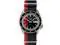 Seiko 5 Sports U. S Special Creation. With vivid colors and bold design inspired by the stripes of vintage race cars, this dynamic watch delivers both memorable styling and durability. For added impact, the black and red stripes flow from the dial to the coordinated nylon strap, sized to fit easily over a racing uniform. Framed by a black uni-directional rotating bezel, the dial also offers a day/date calendar, red second hand, and luminous hands and markers.