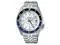 This watch features a 42.5 mm stainless steel case with a silver sunray dial, complemented by a bi-color blue and black rotating bezel. The dial includes bold luminous hands and markers for enhanced visibility, all protected by a Hardlex crystal with a magnified date calendar at the 3 o'clockposition Movement