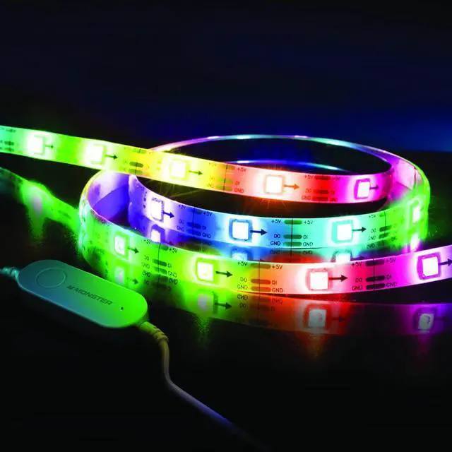 Do you want to add unique, colorful lighting to any location. With the Monster 6.5 ft. LED Color Flow Multi-Color Muti-Zone Light Strip, you can add a little more to any space. Great for backlighting TV displays and desktop computer monitors, our strips are customizable and can be made to reflect any particular area or mood. Download the Monster Smart App to your phone and craft unique multicolor lights and dimmable LED effects instantly anywhere any time. You can also connect our strips to Alexa, Google Assistant and Siri to provide full voice control over your lights whenever you want.