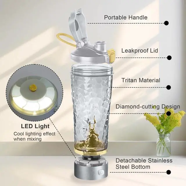 Food Grade MaterialSZSZZMY Electric Protein Shaker Bottle is made of Tritan material, which meets food grade standards, will not decompose harmful substances, and does NOT contain BPA. High temperature resistance 90 degrees Celsius