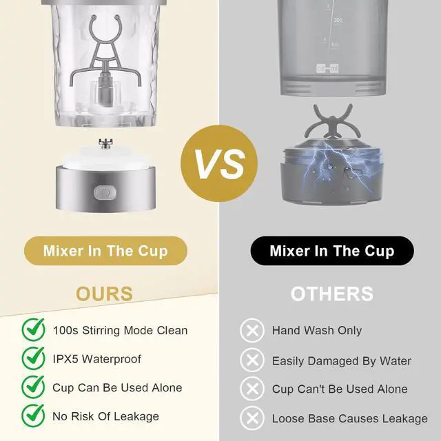 Leak-proof SealScrew-on lid and leak-proof sealing silicone design of the electric mixer blender bottle ensures that the liquid in the cup will not spill.