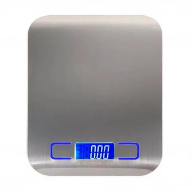 Package Contents: 1 x Backlight LCD Stainless Steel with Fingerprint-proof Finish Digital Kitchen Scale 5000g / 1g, 1 x Bilingual User Manual in English and Chinese