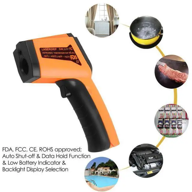 NOTE: Temperature readings from this laser infrared thermometer are inanimate objects. Pls DO NOT USE for humans or animals will not be correct. with FCC, CE, RoHs approved; 2-Year Warranty.
