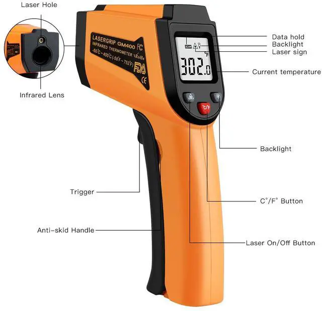 BEST ACCURACY: The distance to spot ratio is 12: 1, meaning the laser grip can accurately measure targets at greater distances compared to most other Thermometers.