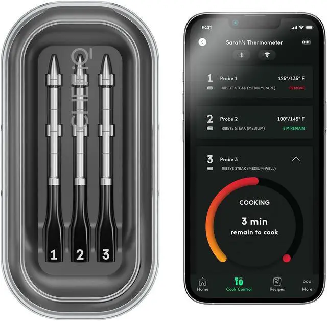 QUAD SENSORS: Get maximum cooking accuracy from any angle with 3 internal and 1 ambient sensor.