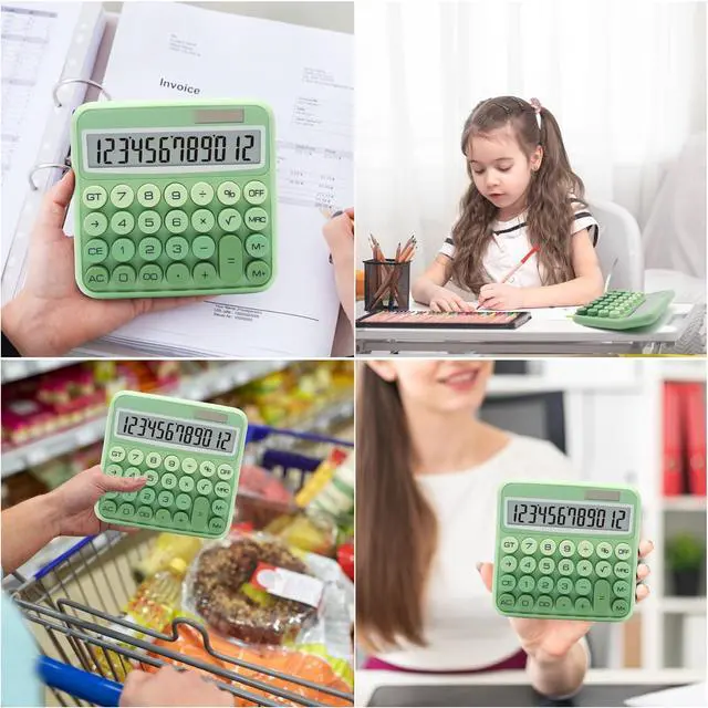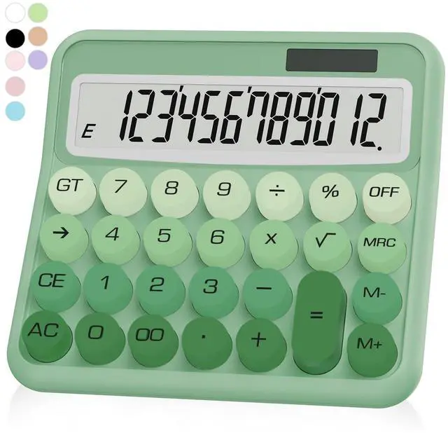 This imitation mechanical keyboard desktop calculator with large 12-digit display takes up little space on your desktop and fits easily into your briefcase or desk drawer.