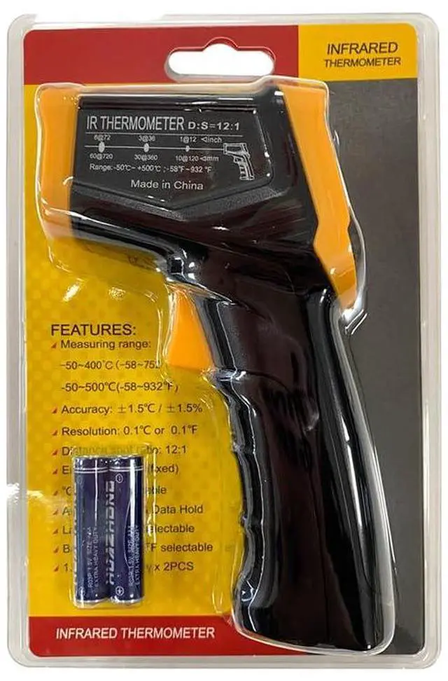 This infared thermometer is used for measuring the temperature of the object's surface, which is applicable for various hot or hard-to-reach objects without contact safely and quickly. This unit consist of optics, temperature sensor,signal amplifier, processing circuit and LCD Display. The optics collected the infrared energy emied by object and focus onto the sensor. Then the sensor translates the energy into an electricity signal. This signal will be turned out to be digital shown on the LCD after the signal amplifer and processing circuit.