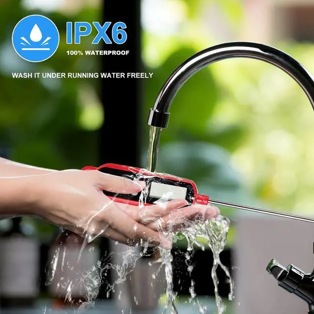 - With an ultra-thin 1.0 mm pointed head, stick into center of turkey, thick rib-eye and liquid etc. easily to get precise internal temperature by pressing "HOLD" button, no worry under-cooked or over-cooked any more