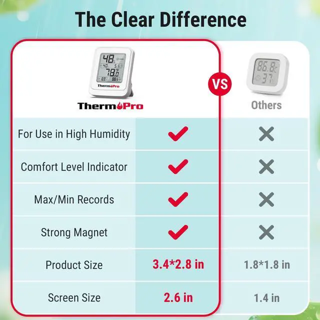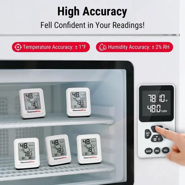 Large and Clear LCD DisplayFeatures a compact LCD display with large bold digits, allowing you to clearly read humidity/temperature from any angle and distance