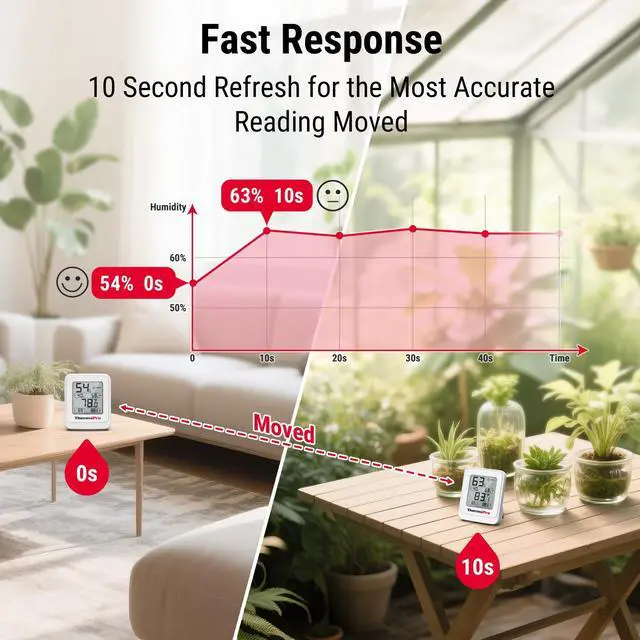 Real-Time MonitoringQuickly view current temperature and humidity levels at a glance, with a fast 10-second update speed for the most accurate readings; This Indoor thermometer Ideal for tracking conditions in greenhouses, plant rooms, or any indoor growing space