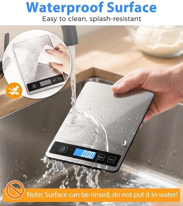 [ Splash-Resistant Stainless Steel Design ]: Durable stainless steel platform wipes clean in seconds. Non-slip feet keep the scale steady and protect countertops