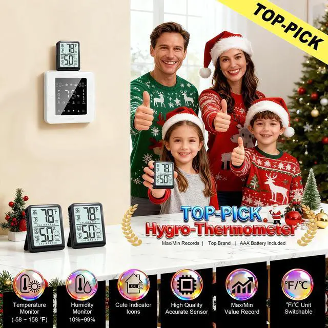 Monitor your home's climate with this mini thermometer hygrometer. Get precise, real-time temperature & humidity readings for any room, nursery, or office to ensure optimal comfort.