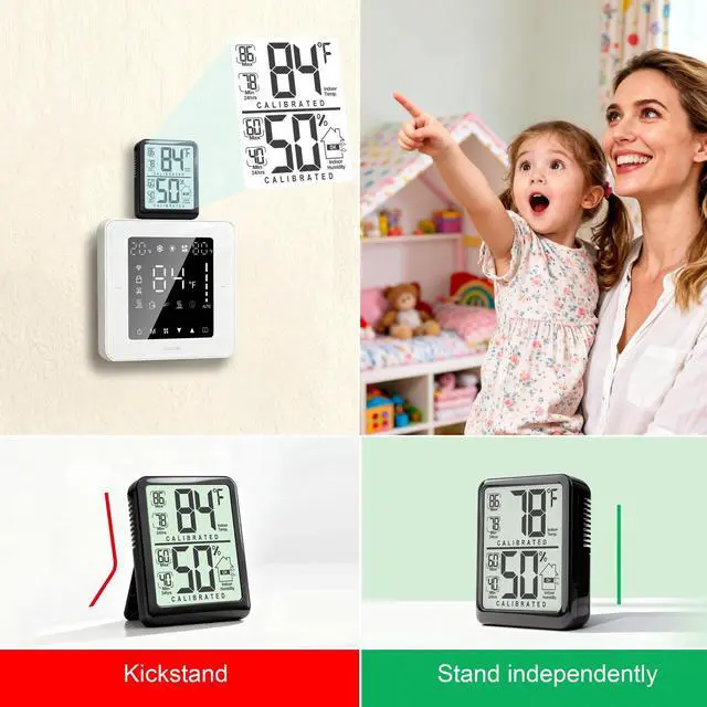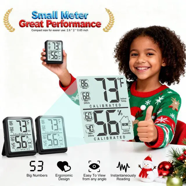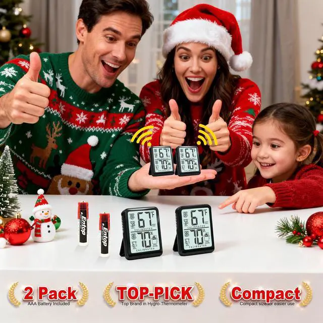 Monitor your home's climate with this 2-pack mini thermometer hygrometer. Get precise, real-time temperature & humidity readings for any room, nursery, or office to ensure optimal comfort.