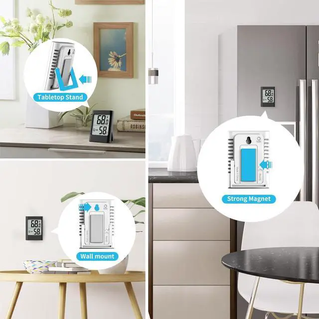 The indoor thermometers can be used in bedrooms, offices, reptiles terrarium, garden soil, greenhouse, warehouse, basement, closet, wine cellar, humidor, guitar room, or freezers.