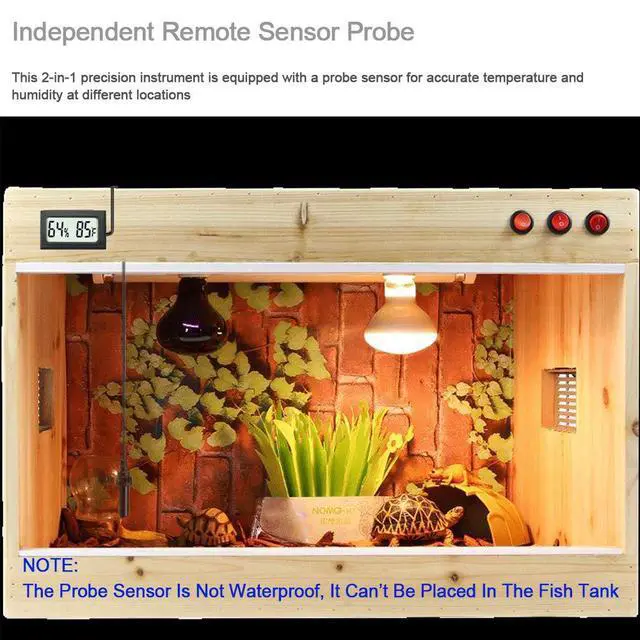 Thanks to the remote sensor probe and digital LCD readout, you can accurately and quickly monitor the temperature of your terrarium with this Digital Terrarium Thermometer with Temperature Probe.