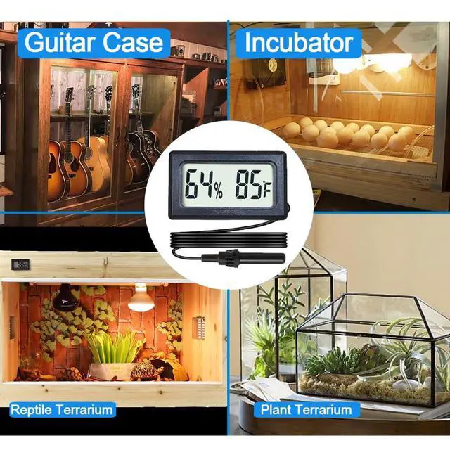 Digital Thermometer and Hygrometer not only helps ensure your pet's living quarters stay at an ideal temperature, but it also helps you identify humidity levels.