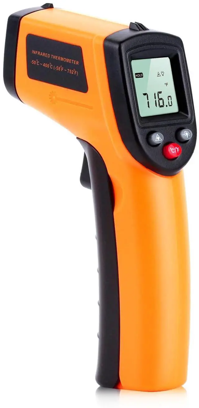 : This infrared thermometer gun for cooking utilizes infrared technology to measure temperatures -58°F1022°F (-50°C550°C), enabling heat detector to measure surface temp from a safe distance, even above boiling point and below freezing point; This infrared thermometer temperature gun is perfect for food preparation, auto maintenance, home repairs, etc.