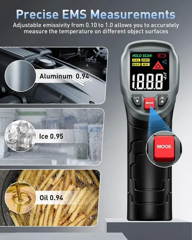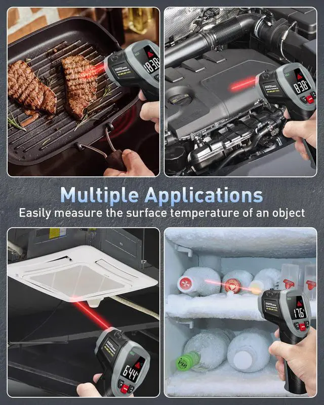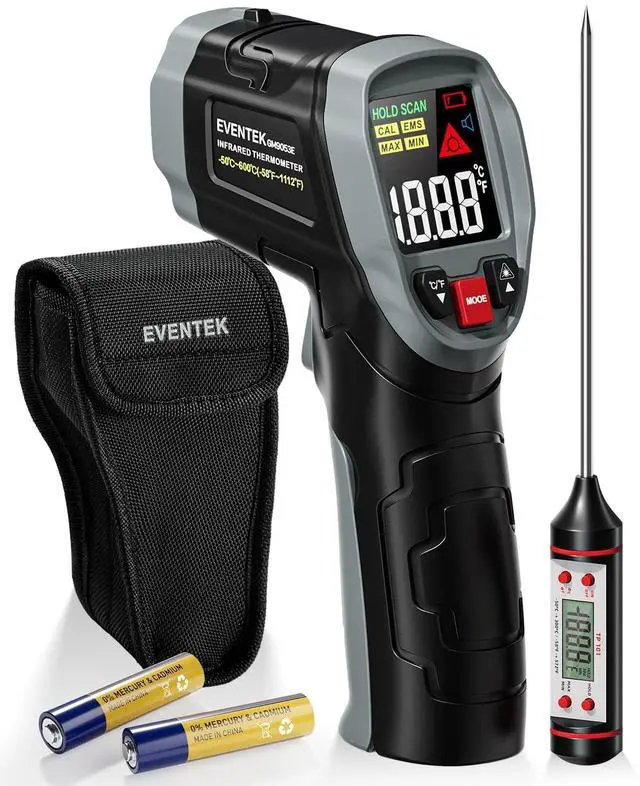 ![Alt view image 4 of 7 - Infrared Thermometer Gun, [3 in 1] -58°F~1112°F (-50°C~600°C) Digital Laser Temperature Gun for Cooking, Pizza Oven, Grill & Engine with Adjustable Emissivity, Meat Thermometer & Bag Included](https://c1.neweggimages.com/productimage/nb640/C5U4D2603160K2I4P48.jpg)