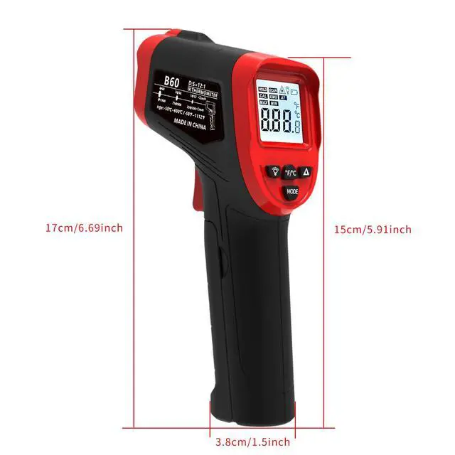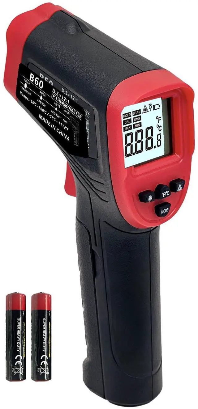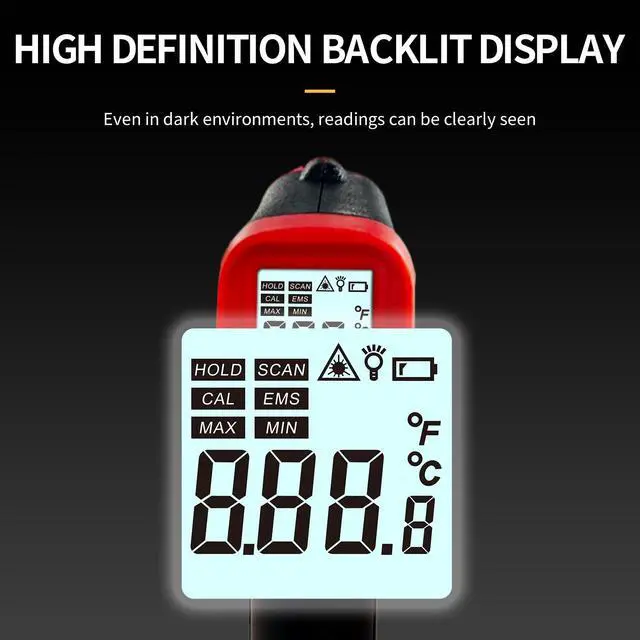 Digital Infrared Thermometer Gun for Cooking, -58 to 1112 °F Laser Temperature Gun with Adjustable Emissivity&MAX&MIN, IR Thermometer for Pizza, Oven, Grill, Kitchen, BBQ, Meat, Food, Griddle (not for Human)
