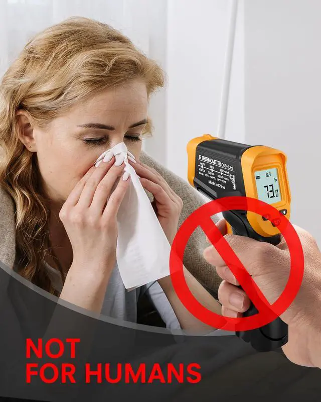 Breakthrough in advanced technology - The infrared thermometer is equipped with a German military-grade infrared sensor chip that provides accurate temperature measurement over a wide range from -58°F to 1112°F With a professional measurement spot ratio of 12:1, the error can be kept within ±1.5% even when the temperature of the mechanical bearings is measured at a distance of 3 meters. The flash response time of 0.5 seconds makes high temperature hazards invisible.