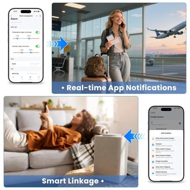 Store and export 1 year of temperature and humidity records. All historical data is easily accessible for review and download directly within the app.