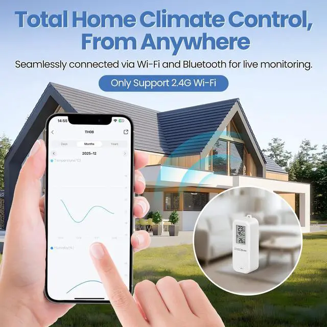 Provides accurate readings with temperature precision of ±1?/±1.8°F and humidity accuracy of ±5% RH for reliable environmental data.
