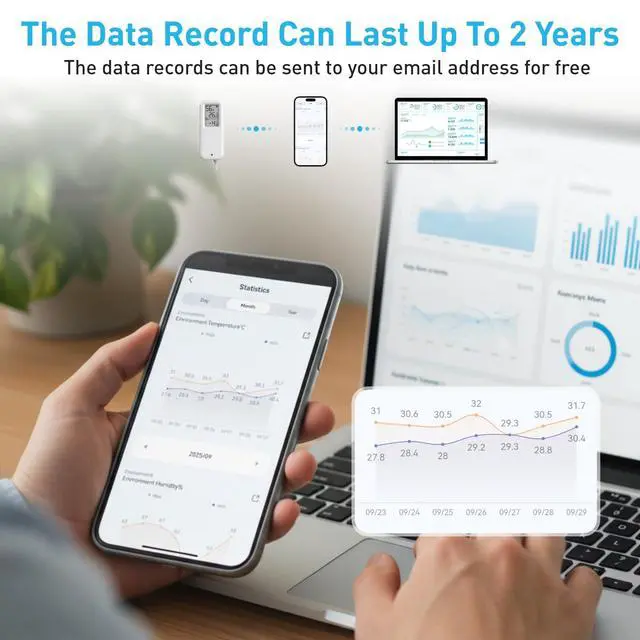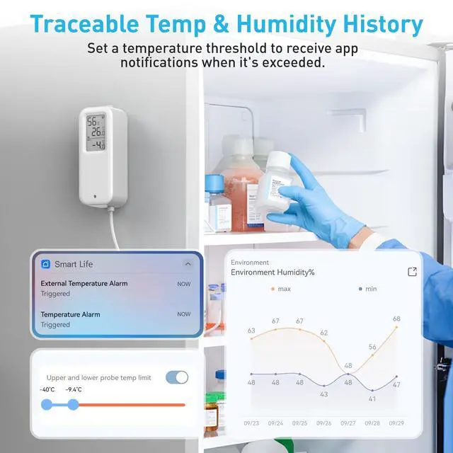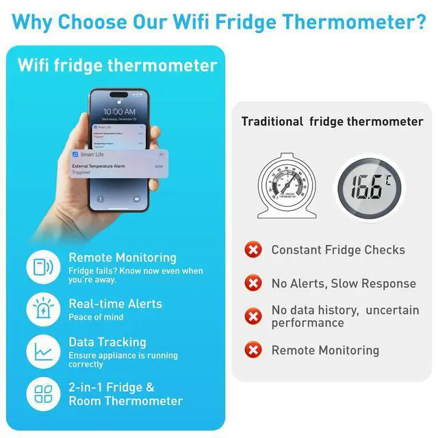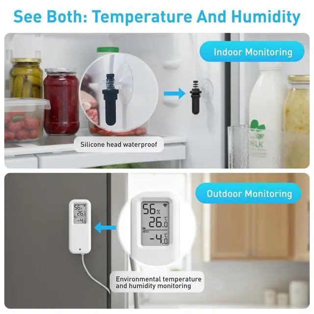 Daytech Freezer Thermometer with Room Thermometer and Freezer Alarm 2in1 WiFi Temperature Sensor with App and Email Alerts for Fridge Fish Tank Pet Cage Wine Cellar Greenhouse No Hub Required(1 Pack)