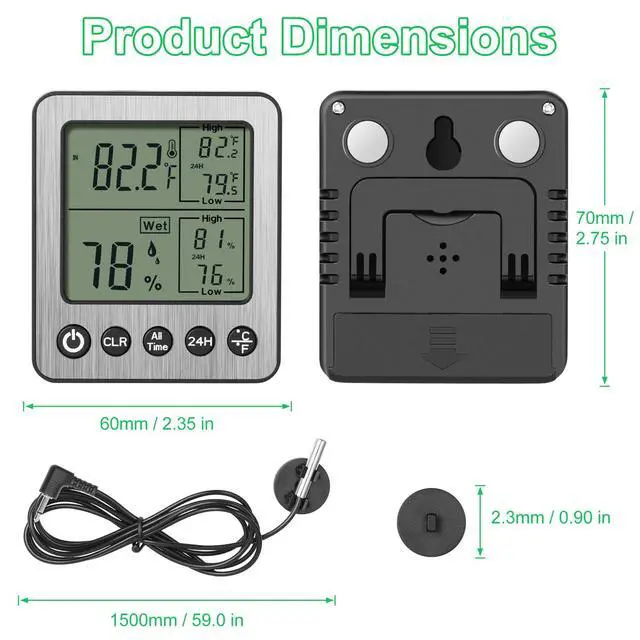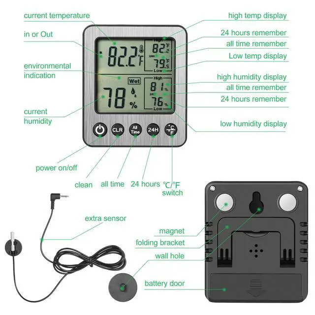 digital thermometer hygrometer digital reptile thermometer hygrometer refrigerator thermometer before all time and 24 hours remember,extra sensor
