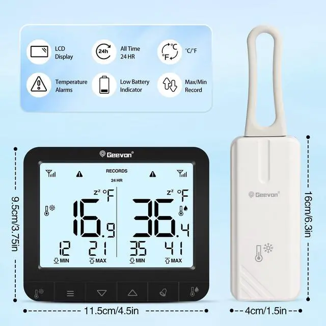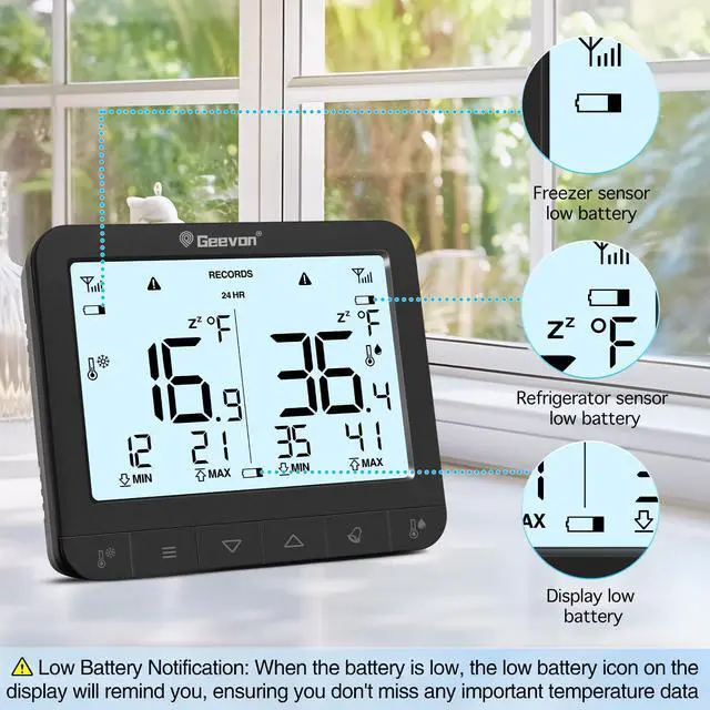 Our thermometer adopts independent working mode, without connecting to mobile phones or other devices, and can independently monitor and display the refrigerator temperature.