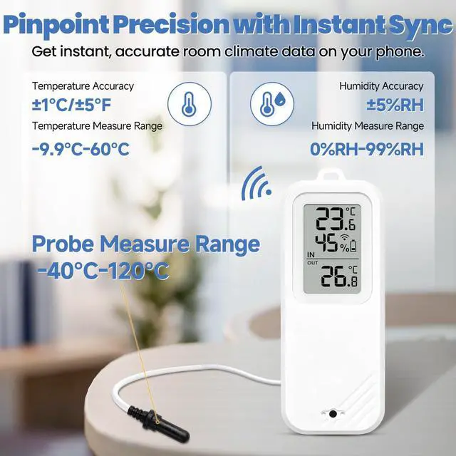 Provides accurate readings with temperature precision of ±1?/±1.8°F and humidity accuracy of ±5% RH for reliable environmental data.