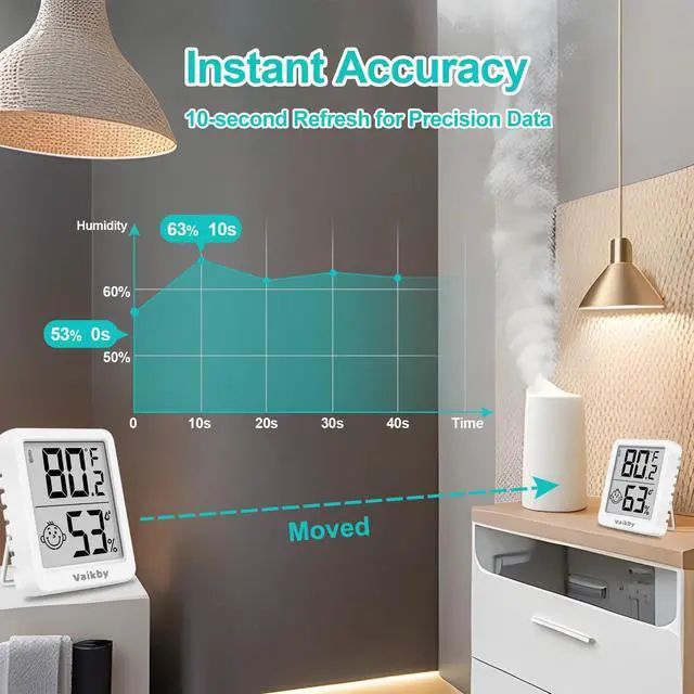 Let the Vaikby humidity monitor and digital hygrometer be your comfort companion, transforming your living space into the haven you deserve. Give it a try, and you'll find that the temperature and humidity monitor is precisely what you've been searching for.