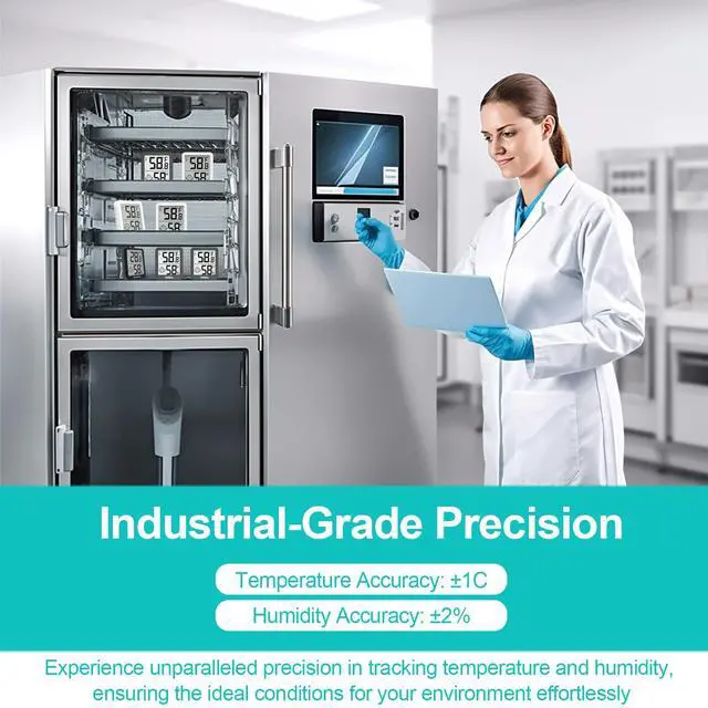 Accurate temp and humidity monitor with dual-probe sensors, manage environment using indoor humidity meter & digital thermometer for room temperature.