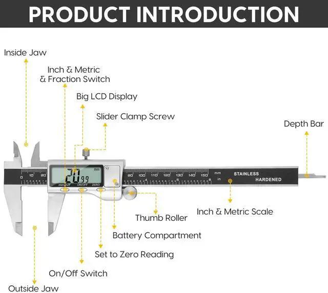 Jiavarry calipers have 3 precise measurement units, 4 multiple measurement modes, with an accuracy of ±0.02 mm / 0.001 inch. Digital calipers are made of high-quality, durable stainless steel material, with long service life, perfect for daily used and home used such as screws, jewelry, DIY gadgets, etc.
