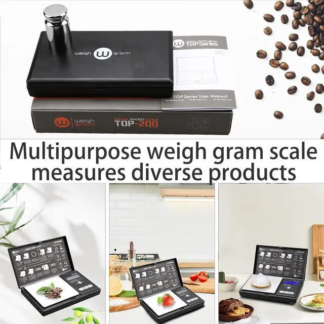The Pocket Gram Scale Size is 5.2 x 2.99 x 0.79 inch Gram Scale allows you to weigh a maximum capacity of a 200g and the minimum accuracy is 0.01 g to guarantee you an accurate and precise weighing session. Not suitable for weighing items weighing over 200g please choose carefullyHow to Calibrated Gram Scale? 1. Turn on the scale and wait until the LCD display 0.00 then press and HOLD MODE Key for 3 seconds The LCD will display 'CAL' Release the MODE key. 2. Press MODE key again The LCS will flash display the required calibration weight.