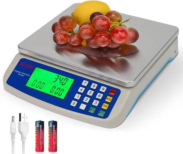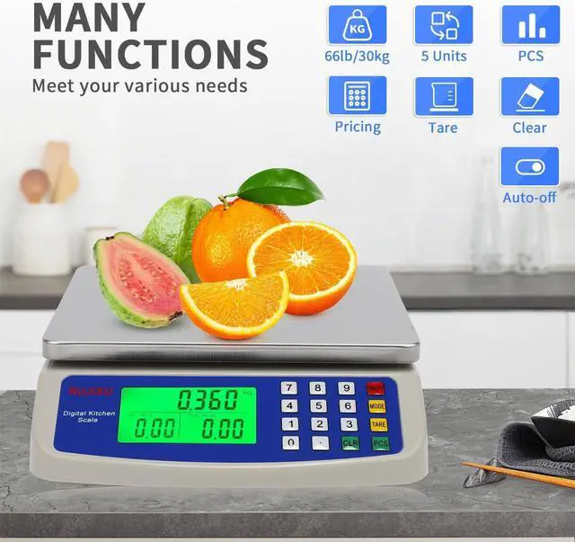 MULTIPLE USES: This commercial kitchen scale is great for cooking baking calculating the price of meat calculating the number of coins DIY weighing pets or weighing pet food weighing packages home brewing calculating daily expenses etc..