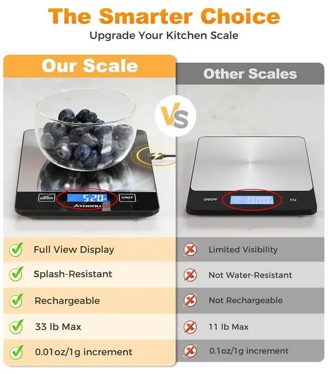 Capacity ]: 1g / 0.01 oz high precision with a 3g15kg (33lb) capacity. 4 high-precision sensors ensure reliable results from small ingredients to larger items[ Upgraded Full-View