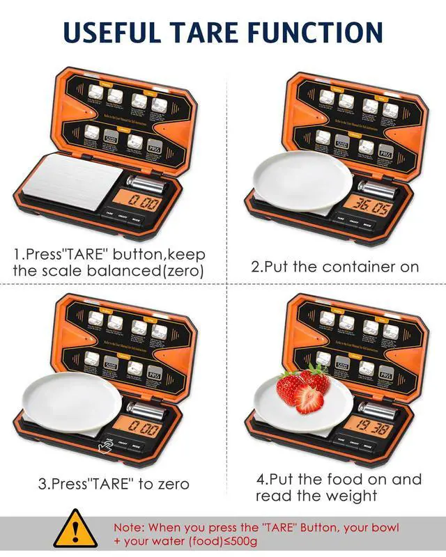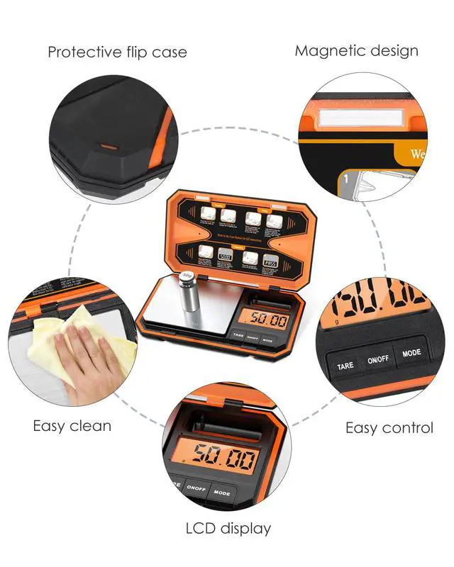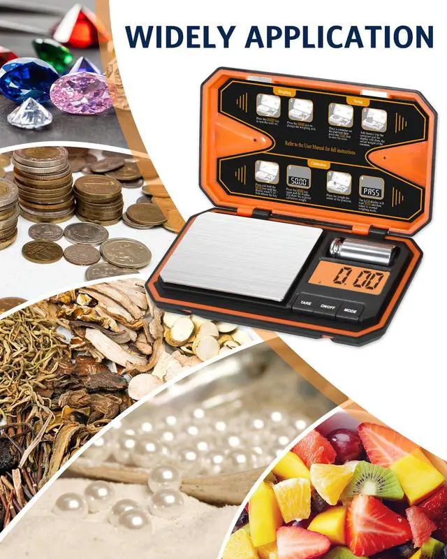 High precision sensorsThis small digital scale manufactured with high precision sensors to ensure accurate weighing between 0.03 g to 500g. Accurate to ± 0.01 g with 50g calibration weight included. Multi-functionFeatures quick switching between six units (g oz ozt dwt ct gn) and a large backlit LCD screen with extra-large digits for easy reading. Easy recalibration for consistent accuracy. One-touch tare function. Low battery and overload indicators. Includes a 50g calibration weight. Power Saving Auto-off after 180 seconds of inactivity.