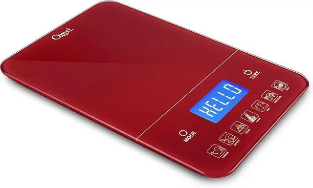 Built-in calorie counter helps you calculate and track your daily caloric intake for 7 of the most commonly weighed food items. Provides touch-button instant caloric (Kcal) values based on the portion of butter sugar flour eggs chocolate chicken or beef placed on the scale. Boasts an ultra-modern design and large weighing platform with touch-sensitive Unit and Tare buttons for effortless operation. Equipped with high-precision sensors that weigh from 0.05 oz to 22 lbs / 1 g to 10 kg in units of 0.05 oz or 1 g. Large high-contrast LCD displays results in ounces pounds grams and milliliters.