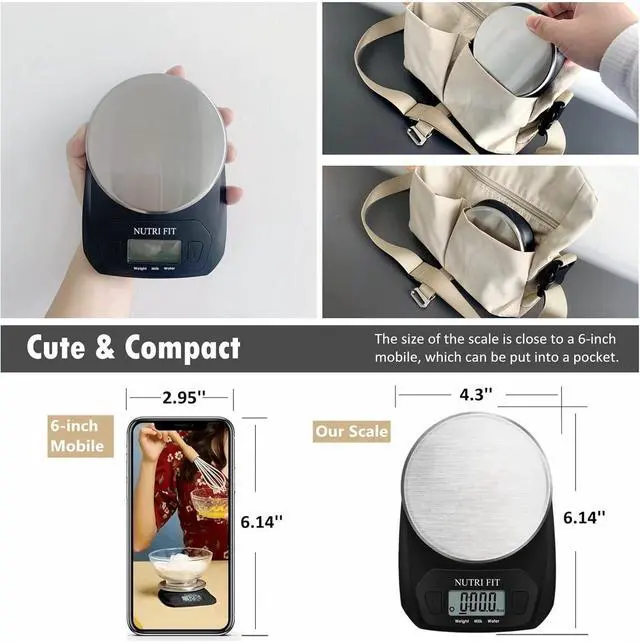 Cute & Compact: The size of the scale is close to a 6-inch mobile. Extra-slim design makes it easy to store in any cabinet while saving space for the rest of your kitchen essentials. Scale size is only for 6.14 x 4.3 x 1.1 inch. 304