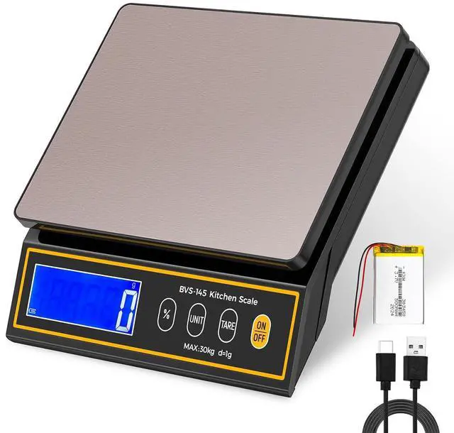 Precise Measurement - This baking scale can weigh up to 66 lb / 30 kg with a readability of 1 g and a minimum weighing capacity of 5 g making it perfect for bakeries that require consistent measurements for large quantities of dough batter or ingredients. Percentage Weighing Function - The kitchen scale includes a percentage function ideal for achieving precise ingredient ratios without additional calculations. This feature makes it easy for anyone to become a master baker. Rechargeable and Replaceable Battery - Enjoy up to 60 hours of continuous use on a single charge. The package includes an USB cable for convenient recharging.