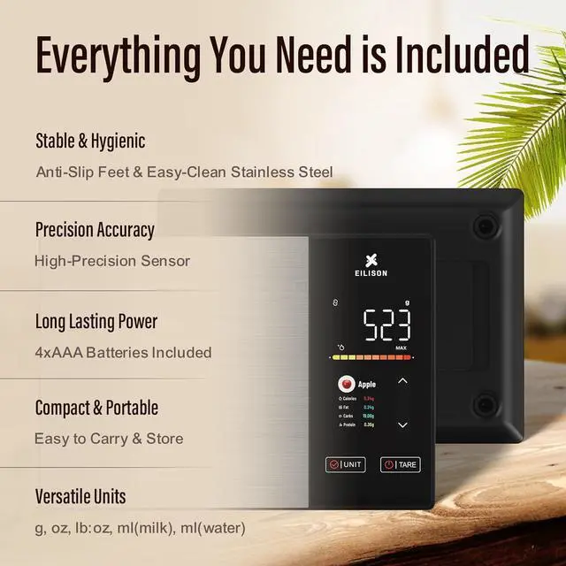APP CONNECTIVITY & FOOD DATABASE: Syncs with our free app to access 999+ foods and analyze 24 nutrients turning your scale into a smart nutrition calculator for healthier eatingSMART
