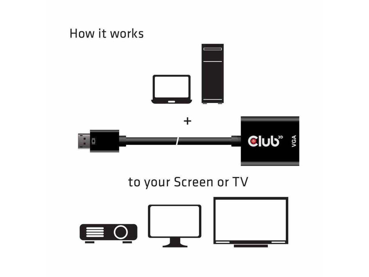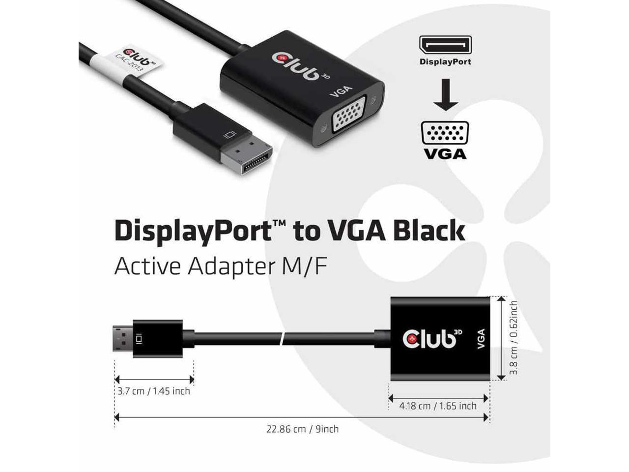 Club 3D DisplayPort to VGA Black Active Adapter M/F CAC-2013