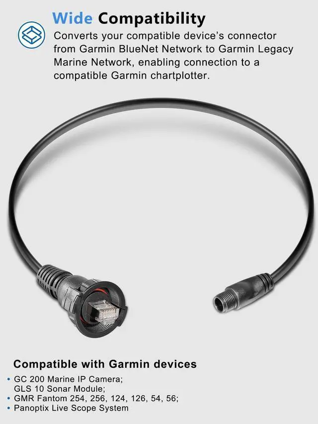 Compatible with the following items: GC 200 Marine IP Camera, GLS 10 Sonar Module, GMR Fantom 124, GMR Fantom 126, GMR Fantom 254, GMR Fantom 256, GMR Fantom 54, GMR Fantom 56, Panoptix LiveScope System